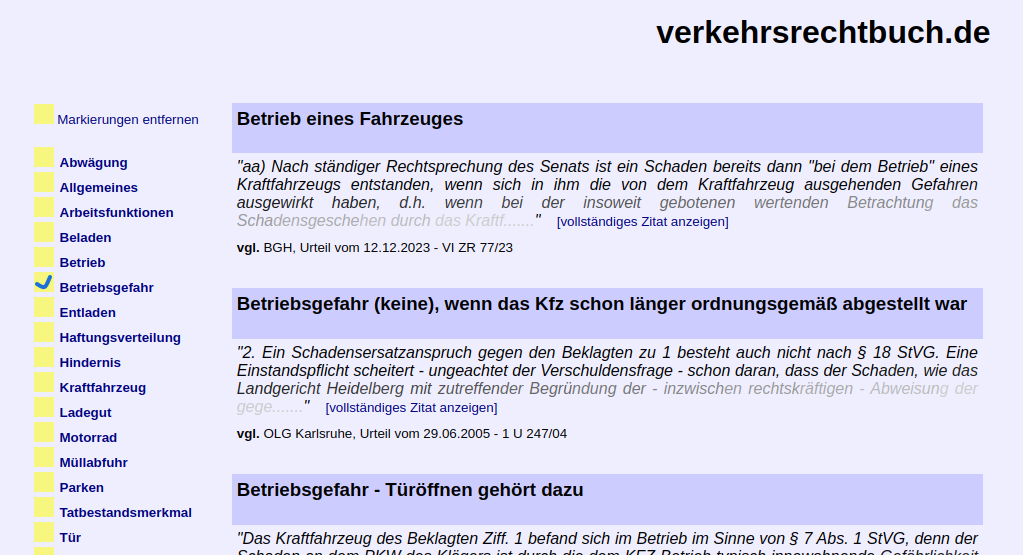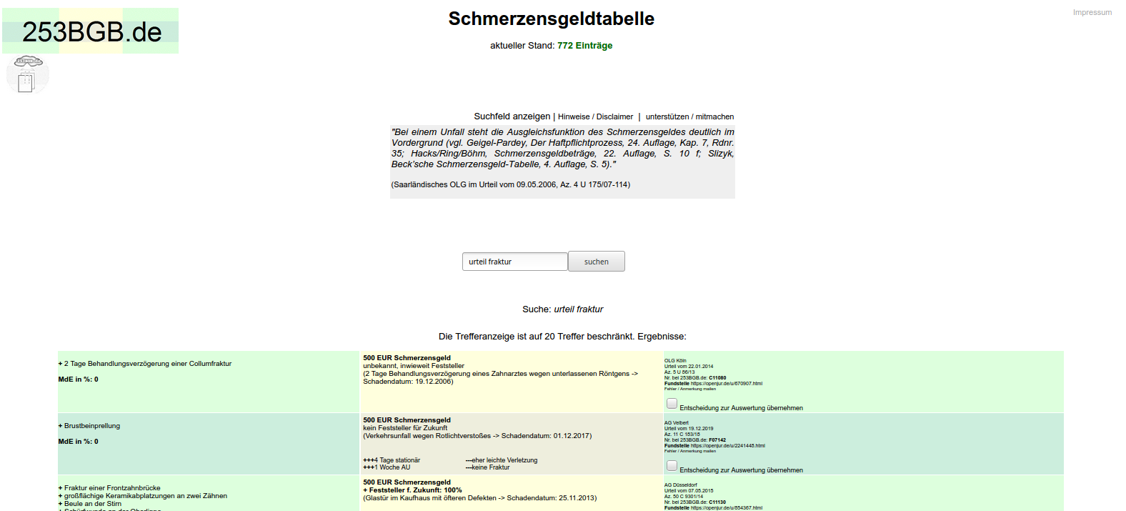 900 Einträge zur Schmerzensgeldrechtsprechung Suchfunktion durch komplette Datenbank oder sortiert in Kategorien: